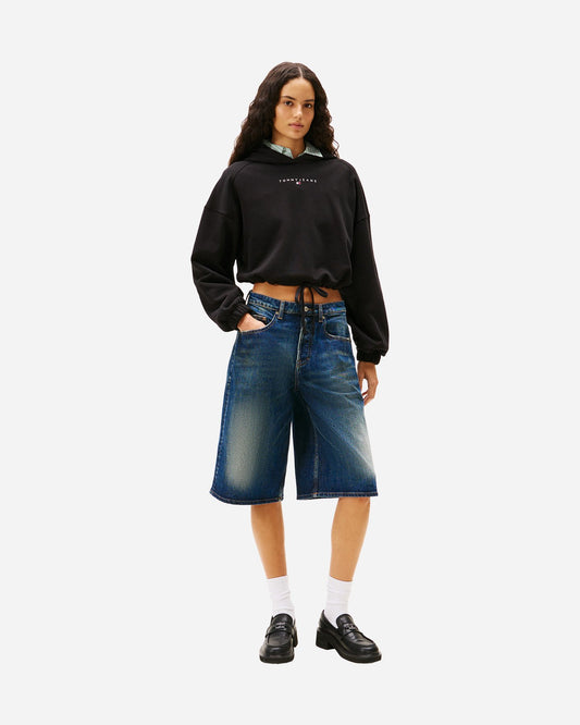 Felpa Tommy jeans crop con laccio con cappuccio nero